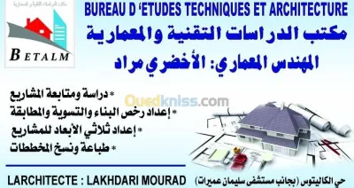 Nous avons, l’honneur de vous soumettre notre meilleure services pour une éventuelle consultation pour la prise en charge des études et du suivi de vos projets. - A cet égar