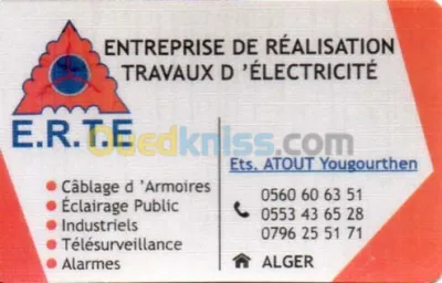 une entreprise qui assure un travaille de qualité 24/24 7/7 - eclirage publique - maintenance - cablage d'armoirs - poste trasfo -telesurveillance alarmes
