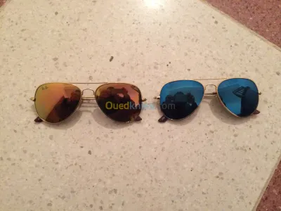 je vends deux 02 paires de lunettes de marque ray ban (houra) de couleur bleu et jaune (le verre) et de couleur doré le squelette metalique a 8000 da chacune