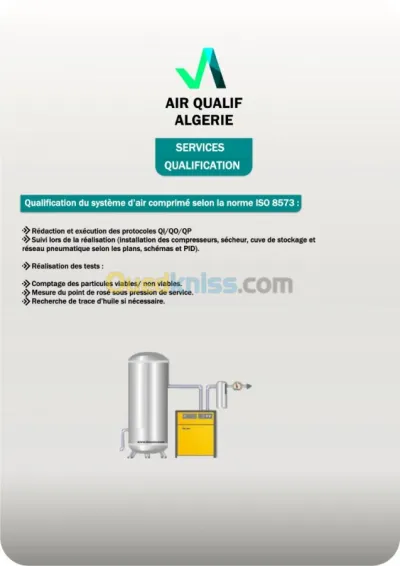 Service de qualification QI, QO, QP des systèmes de génération et de distribution d'air comprimé et gaz, pour l'industrie pharmaceutique et le milieux hospitalier selon les normes Iso 85