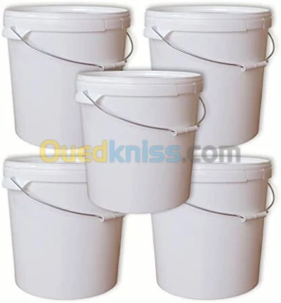 Seaux de peinture en plastique blanc opaque une capacité de 20L ( 25kg ) avec une poignée métallique italienne