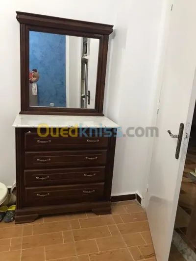Je met en vente une magnifique coiffeuse la surface est en marbre ainsi que deux(2) tables de nuit