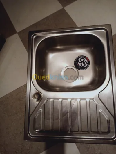Evier cuisine neuf avec égratignure et trou de robinet non finalisé. Evier cuisine en matiere INOX made in Italy. Accessoire : siphon Dimension: 50x65 prix neuf: 11000 DA