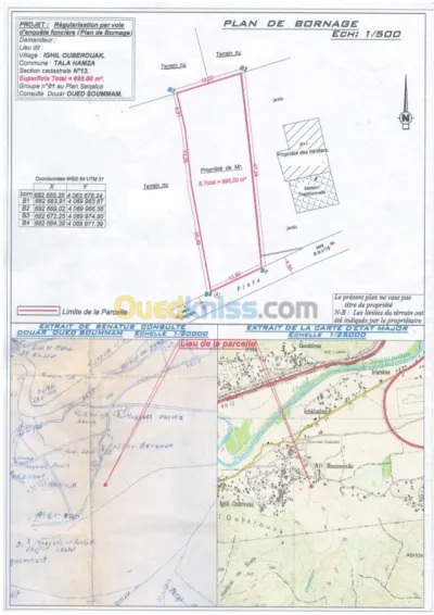 je met en vente un lot de terrains a IGHIL OUBROUK proche de l'université de ABOUDAOU a Tala Hamza : - Superficie : 695 m². - Prix: 33 000.00 / m2 négociable. - Acte . - Eau, �