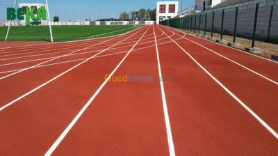 -Réalisation de tout type de piste d'athlétisme -Système sandwich -Système Tartan -Système Spray Coating -EPDM -Polyuréthane -Binder -Sealer -IAAF -Revetement en caoutchouc -