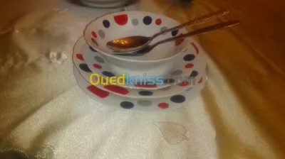 Bonjour je loups de la vaisselle pour toute vos fête elle est équiper de bol assiette creuse et assiettes salade assiettes lhame Lahlou assiette djouaze fourchette et cuilleres soupières