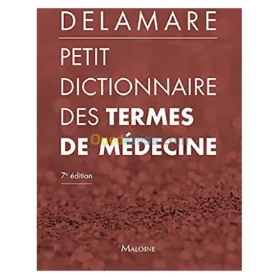 Titre : Dictionnaire termes médecine infirm. 7e Auteur : Delamare J. Editeur : Maloine Année : 2018 Théme : Médecine Et Paramédical Sous-théme : Dictionnaires Médicaux ISBN : 97822240