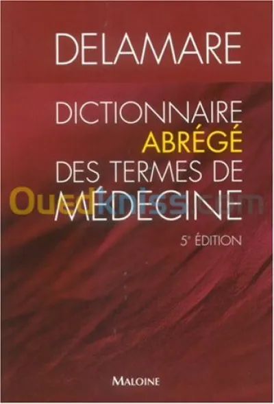 Titre : Dictionnaire abrégé des termes de médecine 5e édition(Broché) Auteur : Jacques Delamare Editeur : Maloine Année : 2006 Théme : Médecine Et Paramédical Sous-théme : Vocabula