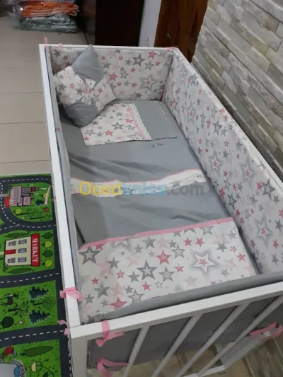 Thana couture vous propose la confection de trousseau bébé sur commande et sur mesure avec les meilleurs tissu 100% coton hypoallergénique. Le trousseau et composé de: Tour de lit comp