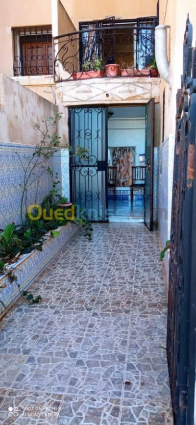 Une maison à vendre située au Quartier Ben Azzout zabana Blida. comprenant : Un grand garage pouvant accueillir plusieurs véhicules, avec une chambre, une cuisine et une salle de bain, id