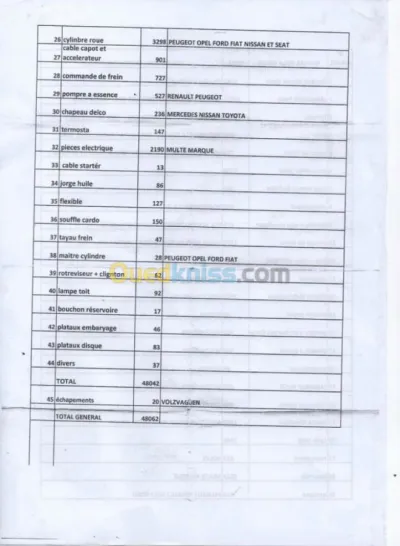Kayan 30000 pièces détachée varié Les marques audi,golf,toyota,peugeot,renault,skoda,polo,fiat,ford,citoyen,kia,hundai,passat,chevrolet,nissan,volsvagane Nbi3o jamla brk