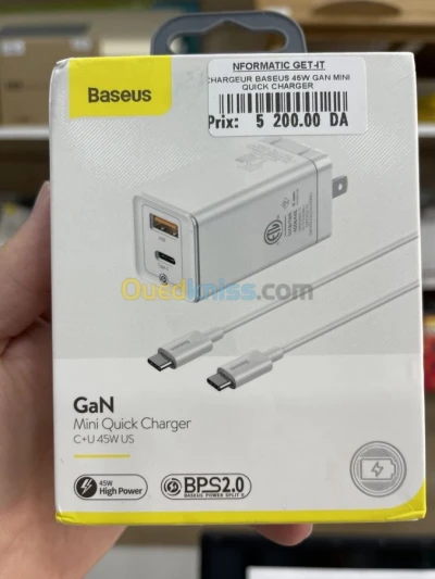 Chargeur Baseus GaN Mini Quick Charger C+U 45W US ORIGINAL TEL ☎️: Adresse