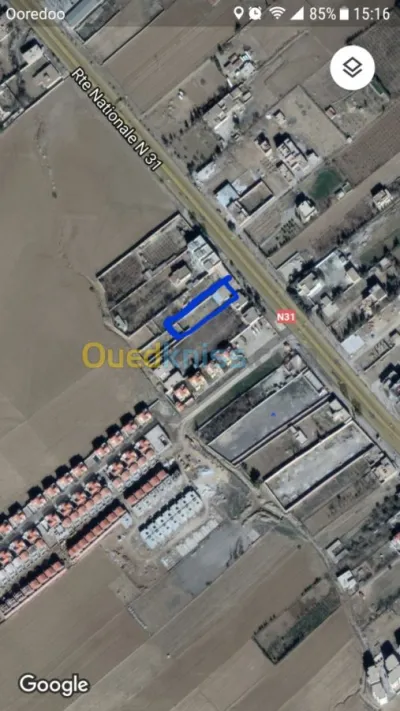Je vend une bâtisse de 375 m2(25m×15m façade ) plus un terrain de 900 m2 une superficie totale de 1350 m2 à l'entre de tazoult proche des villa de BENBELLAT . UNE façade de 15 m× 90 m
