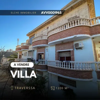 Réf : AVV0001965 A vendre une villa d'une superficie totale de 1200 m², R+2 , 2 façades de 30 m/26m ,Garage 2 voitures , située a traverssa ,bir el djir ; Oran. -acte notarié. Commodit�