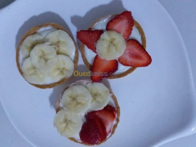 Tarte et gateaux pour cafétérias ou à domicile: *Tartes aux fruits - Tartes au citron - Tartes au chocolat. *Cigare - khobz el bey - Qtaïef - Baqlawa. *Verrines aux fruits - Mousse