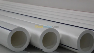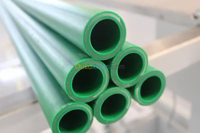 Tube PPR renforcé en fibre de verre destiné au chauffage PN 25, SDR6 Diamètre: 20mm,25mm,32mm,40mm,50mm,63mm, 75mm, 90mm, 110mm, 125mm, 160mm Couleur : Blanc et Vert avec 2 rayures ro