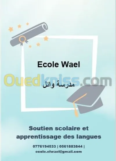 wael school est une école d'enseignement pour éleves de C.E.M et lycée, pour la préparation des élèves à réussir avec brio dans les épreuves du BAC et du BEM. De plus, notre école