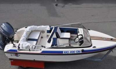 VENTE d'un bateau glisseur RIO400 idéal pour Balade en mer ou bien pour la pêche longueur 4m largeur 1.60 m avec moteur YAMAHA 50cv 2 temps 3 cylindres papiers en règle avec une remorque