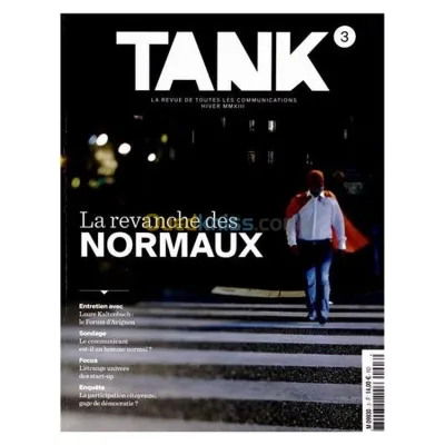 Titre : Tank, N° 3, hiver 2013 : La revanche des normaux Auteur : Collectif Editeur : Télémaque Année : 2013 Théme : Sciences Humaines Et Sociales Sous-théme : Sociologie ISBN : 978275