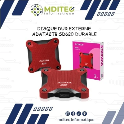 DISQUE DUR EXTERNE 2TB ADATA SSD SD620 USB 3.2 GEN2 DURABLE ---------------------------------------------------------------- DISQUE DUR EXTERNE ADATA ASD620 CAPACITÉ: 2 TB INTERFACE: USB 3.