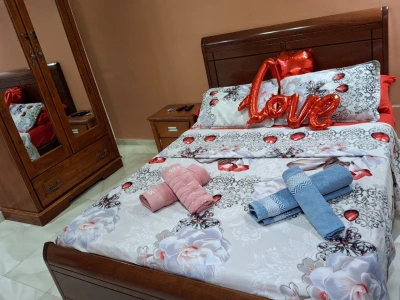 Un bel appartement joliment décoré: 2 chambres 1 grand salon 1 cuisine équipée 1 salle de bain italienne, Toilette siège anglais, 2 balcons. Tout confort : air conditionné, chauffage,