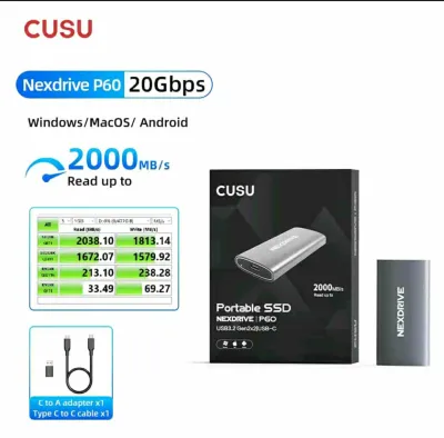 DISQUE DUR SSD EXTERNE CUSU 1TB 🔹 Vitesse lecture jusqu'à 2000Mb/s 🚀 Vitesse & Sécurité au Rendez-vous ! 📦 Modèle: P60 💾 Capacité: 1To ⚡ Connexion: USB 3.2 Gen 2*2 – Ul