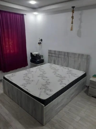 Belle chambre à coucher complète,avc un lit 160 double fond,un grand dressing de 3,60,m de largeur avec 4 portes coulissantes avec mirroir ,coiffeuse 03 tiroirs,et 02 tables de nuit 2 tiro