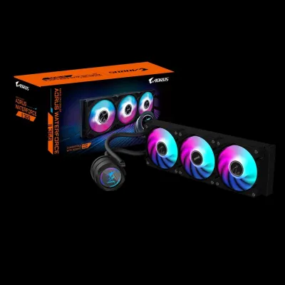 GIGABYTE AORUS WATERFORCE II 360 AIO Refroidisseur liquide pour processeur - 3x ventilateurs ARGB de 120 mm, mécanisme d'emboîtement, DAISY-CHAIN, compatible avec Intel LGA 1851 et AMD AM5