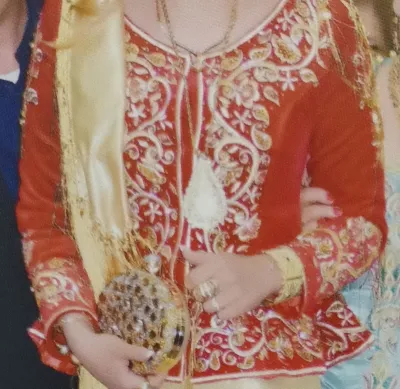Vend une jupe midi devant et longue derrière avec sa veste tenue karakou moderne et revisitée pour mariage fête tissu venue de Dubaï en très bon état comme neuf porté 01 fois par une