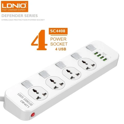 🛍️ Disponible chez Dreamsat – Multiprise LDNIO SC4407 -Caractéristiques : • 4 sorties USB intelligentes de 18W haute puissance, charge rapide pour les tablettes et les téléphon