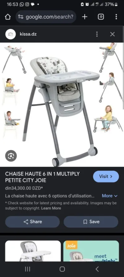Chaise haute de la marque joie dosier qui s'incline en 3 positions . Puis vous pouvez letulisez come table par la suite quand bébé auras grandi. Très facile à laver