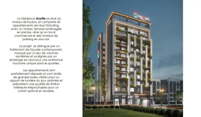 Nous proposons un magnifique F4 d'une superficie de 151 mètre carré en Mezzanine dans notre future résidence AZURITE située au nivaux de kouba , pas loin du prestigieux pâtissier Zerrou