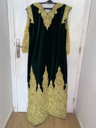Jolies robes traditionnelles et modernes ,certaines neuves et d'autres en excellent état portées une seule fois, proposées à la vente à prix négociable : 1- un karakou moderne vert av