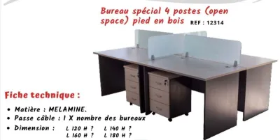 ✅ Station de travail (open space) local en mélamine - Gamme Érable ✅ Disponible: * Station de travail 4 postes (4 bureaux 120cm pieds bois + 4 caissons mobiles + 4 portes unités + sé