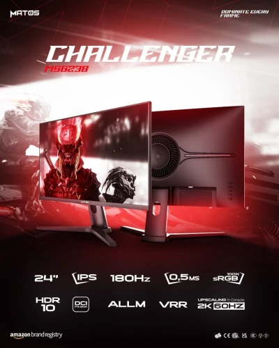 Matos Challenger 180hz Fast IPS 0.5 ms GTG VRR & ALLM Playstation5/SeriesS/X 2K Upscaling 60Hz Software Optimisation 1- The new generation of fast IPS Gaming monitor 2- HDR10+ High Dynamic R