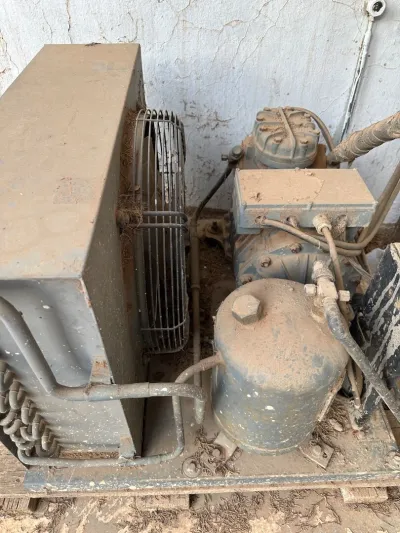 Groupe de froid semi hermétique : compresseurs, évaporateur a deux hélice, tunnel de froid sans tapie