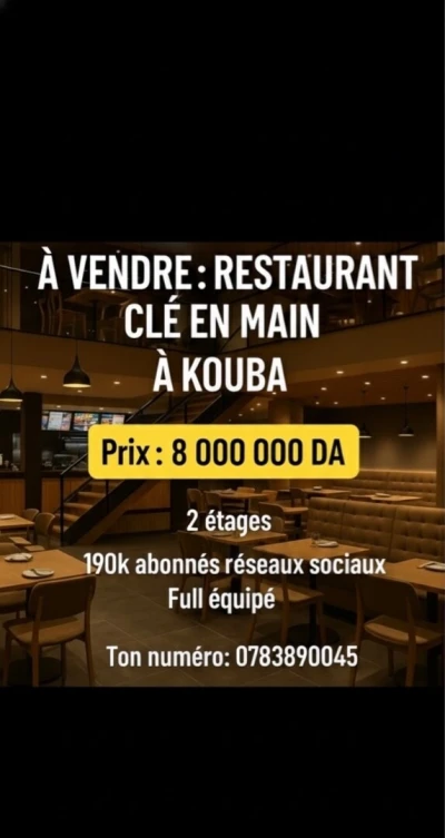 Fond de commerce restaurant + materiels à vendre a vieux kouba.