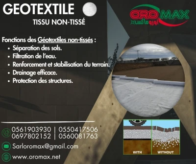 Géotextiles non-tissés haut de gamme OROMAX– Solides & performants Besoin d’un géotextile fiable et résistant pour vos chantiers ? Nos modèles non-tissés assurent drainage, sépara