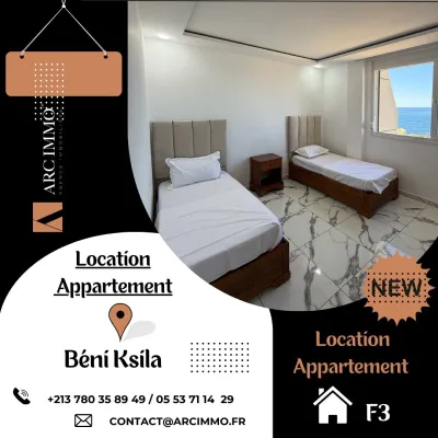 🏡 ARCIMMO vous propose en location un magnifique appartement F3 avec balcon vue sur mer a Béni Ksila – Béjaïa 🌊 Située au bord de la Route Nationale n°24, notre résidence est i