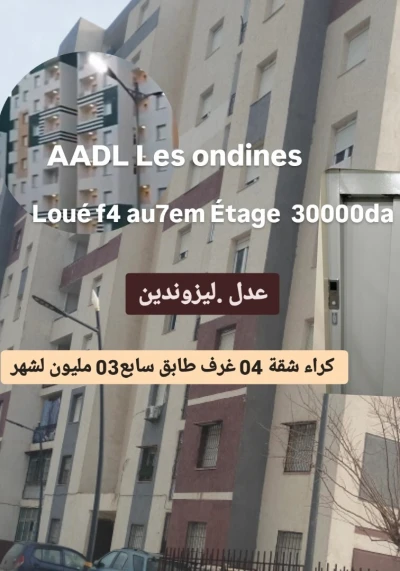 AADL Les Ondines Bordj el bahri Bureau d'affaire mouloudi Met En Location un appartement composé d'une f4 bien ensoleillé superficie de 90 mètre carré au 7em Étage avec ascenseur toutes