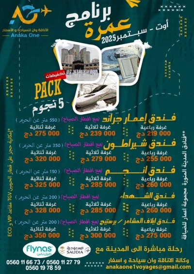 شركة الأناقة وان للسياحة تقترح عليكم تخفيضات عمرة اوت سبتمبر ✅ الاقامة في مكة المكرمة فندق4⭐️⭐️⭐️⭐�