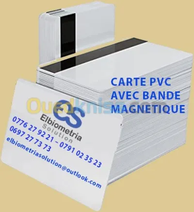 Disponible tout type de carte PVC PVC Blanc simple PVC Avec bande magnétique (bande noir) PVC Sans contact RFID 125 khz (a puce) .