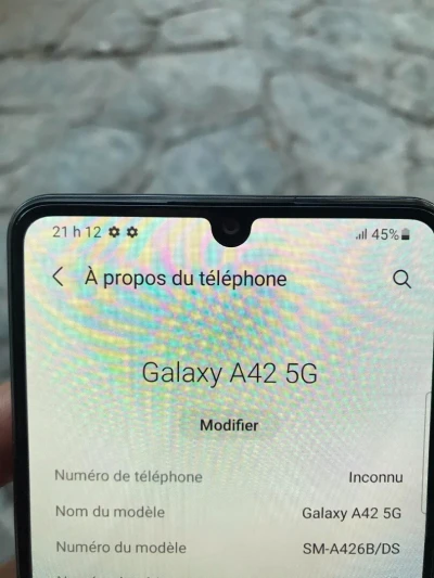 Samsung Galaxy A42 5G habet CABA CE Ram 4GO Stockage 128Go Processeur Qualcomm Snapdragon 720G Batterie 5000mAh Définition 2400 x 1080 pixels Taille d'écran 6,7 pouces Caméra 64 Mp 4 capt