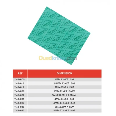 KLINGERITE VERT : Klingerite presente une excellente resistance aux produits chimique et possède des propriétés mécaniques excellentes , utilisable avec differentes substances et resiste