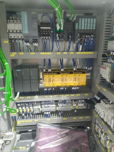 Armoire de commande standard V2AM (Renault SCUBE PMS V2AM) avec ET 200S, SCALANCE X208, SITOP PSU200M 10 A, 8xRJ45 M12 connexions, multilingue avec CPU 317-2PN/DP et 2x CP 343-1LEAN avec rel