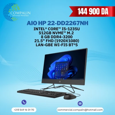 PC ALL IN ONE HP 22-dd2005nk(70F93EA) INTEL CORE I5-121235U 30GHZ(12 mo) DDR4 8GO B/SSD512/GPU INTEL IRIS/FREEDOS/21.5 ULL HD IPS