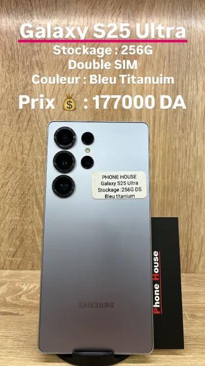 Galaxy S25 Ultra 256G double puce la ram 12G neuf garantie 1mois avec facture couleur bleu titanium
