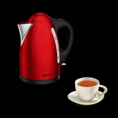 Bouilloire Électrique Sans Fil 1,7L 2400W Rouge Inox Tefal KI110511 - Une bouilloire électrique exceptionnelle avec résistance dissimulée pour une ébullition rapide et un nettoyage fac