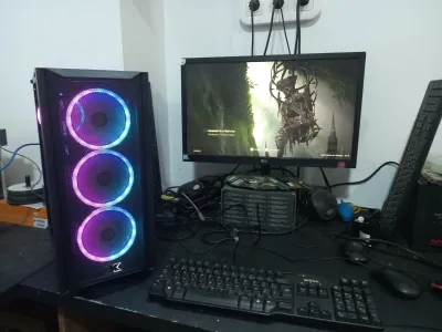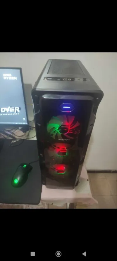 Unité gaming trés bon état Carte mere h310 Processeur i3 8100 Ram 8g ddr4 Disque dur 128ssd+500g hdd Boitier sprit of gamer rgb Ventilo rgb Alimentation 450w Carte graphique rx 470 4g