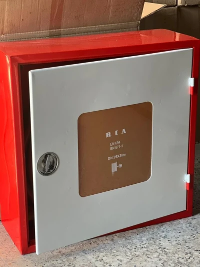 ARMOIRE ET RIA ANTI INCENDIE DE LA MARQUE FETAS CONFOME AU NORMES INTERNATIONAL . ARMOIRE A TOLE AVEC RIA ANTI INCENDIE DN25 LONGEUR 20M ET 30M ARMOIRE A VITRE AVEC RIA ANTI INCENDIE DN25